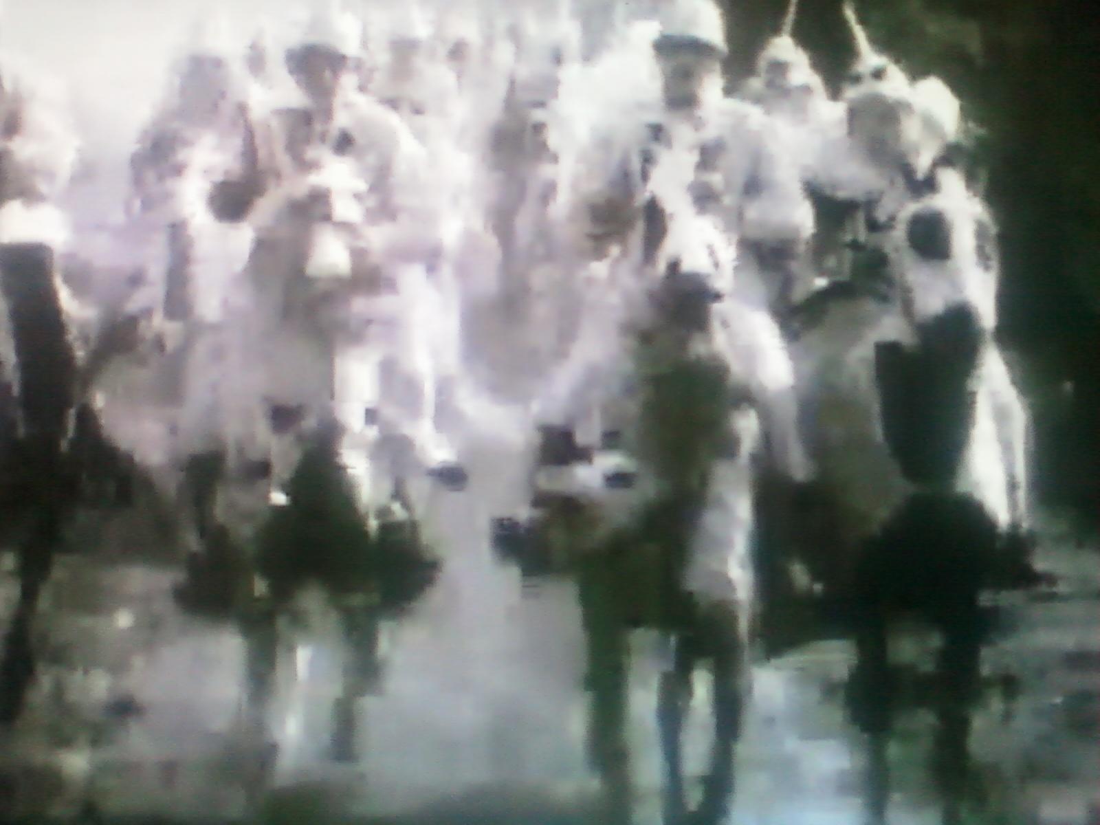 I have heard two interpretations of this one. First, it seems the angel might be shading his eyes, which would elicit a different interpretation than that of the lion and his raising up to look. However, common consensus says, and this makes the angel much more in line with the movements of the lion, that the cherub is, instead, throwing a punch. Amid this massacre, he is demonstrating the arising conscience of the proletariat and their destined revolution. It is important to recognize that when dealing with genius like Eisenstein, to realize that his montage is calculated, not just random and pointless.