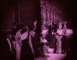 While montage was finding itself in the works of Edwin Porter and Robert Wiene, Griffith was taking it to new places. If montage could be used to deepen moral commitment in the context of a single scene or set of scenes, and the scene was, as is currently understood, the basic building block of a single film, would the film deepen further if the blocks were changed from individual scenes to entire segments? This is what Griffith accomplished in Intolerance: Love’s Struggle Through the Ages. This “montage of plot” as I’ll call it was contextualized by use of a perfected method of color filtration, various hues were used to help remind the viewer which story was being seen: the stories of the Jacobin persecution, the crucifixion of Christ, the destruction of Babylon and the struggling American family. Griffith bounces back and forth between these stories with dexterity due to his perfection of montage technique. Examples of individual shots using this coloration method are shown below (notice also the variation of long-shot and closer ones):