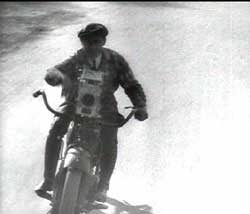 Here (above) is what I simply understand as Vertov just having some fun. We see the film of the “Man” with a movie camera, then we see the audience watching the film, which is the exact same film we just saw first hand. At what point in this montage are we in the audience, or we the audience of the audience? And if that isn’t confusing enough, stop and realize that you are being filmed…the man on the bike has the movie camera.