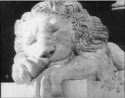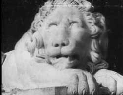 Another example is his use of intellectual montage. Notice the image of the lion statue that is scattered (or, “inserted” remember Lang!) throughout the scene. What does the lion do?