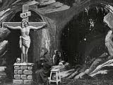 Here, you can see the priest bow before the Crucifix in prayer, then before him appears, out of nowhere, a maiden, then, another. The means for creating this phenomenon is simple enough to fathom now, but consider it in the time of the Lumières; this was taking a medium to all new levels. And, from the editing of scene change and the instigation of the jump cut, Méliès provided the foundation for montage theory.